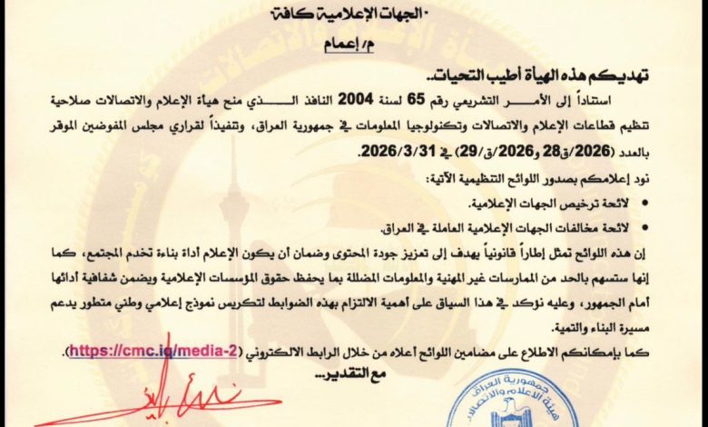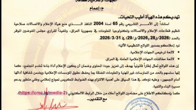 هيئة الاعلام والاتصلات تصدر اعماما أصدرت هيئة الإعلام والاتصالات تعميماً رسمياً تضمّن جملة من الضوابط…