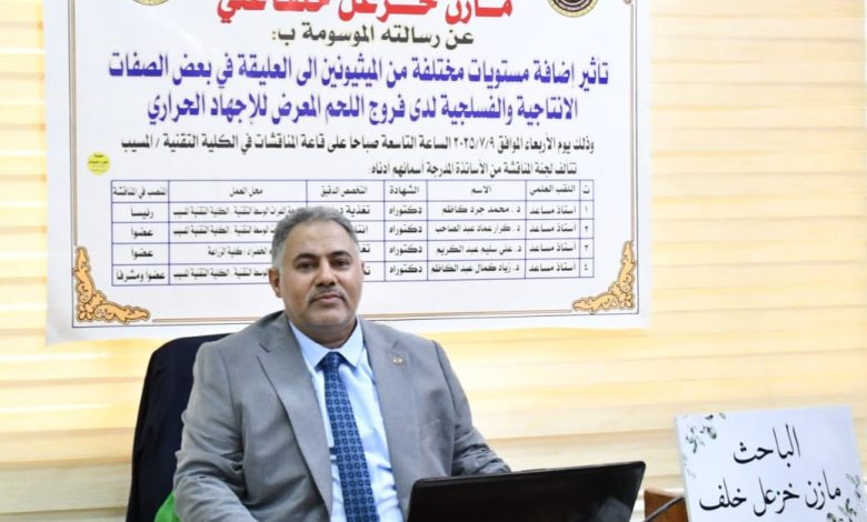 شهدت الكلية التقنية المسيب إحدى تشكيلات جامعة الفرات الاوسط التقنية مناقشة رسالة ماجستير للباحث مازن خزعل خلف من قسم تقنيات الانتاج الحيواني،والموسومة