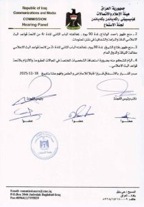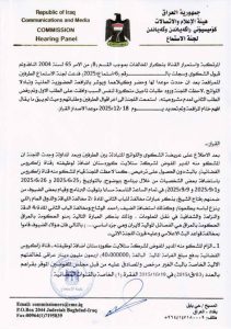 ويأتي هذا الإجراء ضمن الدور الرقابي الذي تمارسه هيئة الإعلام والاتصالات لضبط المحتوى الإعلامي، وضمان التزام الضيوف والمتحدثين بلائحة قواعد البث الإعلامي المعمول بها في العراق، منعاً لإثارة الفتن أو تجاوز معايير الخطاب العام.