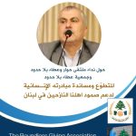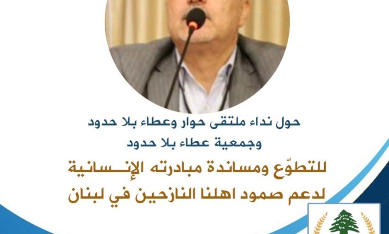 تحت شعار *كونوا دفءَ خيمةٍ ودواءَ وجع*، أطلقَ مُنسّق ملتقى حوار وعطاء بلا حدود، ورئيس ومؤسّس جمعية عطاء بلا حدود، الدكتور طلال حمود، نداءً إنسانيًّا عاجلًا من فرنسا، داعيًا إلى أوسع حملة تضامنٍ لدعم أهلنا النازحين الصامدين في مختلف المناطق اللبنانية، وجاء في بيانه: