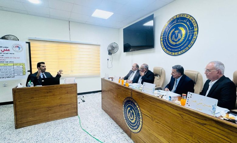 رسالة ماجستير في الكلية التقنية المسيب تبحث دراسة مختبرية وعددية لموثوقية القواعد المتجنبة المعرضة للأحمال الرأسية في التربة الطينية