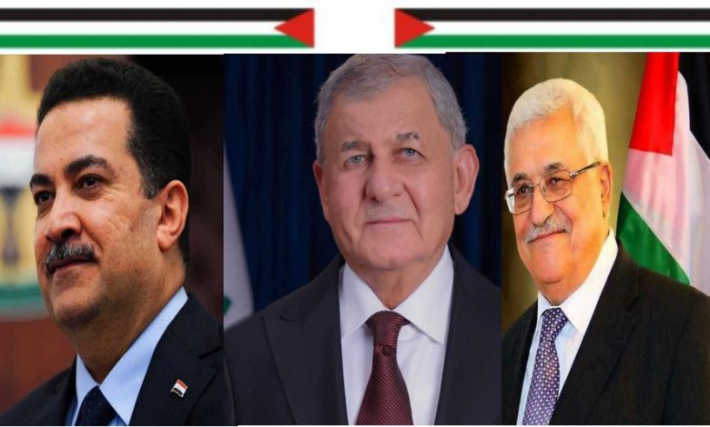 حيث ثمن الرئيس محمود عباس مواقف العراق المشرفة والمتواصلة في دعم الشعب الفلسطيني وحقوقه المشروعة،واثقين من مواصلة العراق لدوره الفاعل لوقف إطلاق النار في غزة وعودة النازحين الى مناطقهم وإعادة الإعمار وإستلام دولة فلسطين ُحُكمها في قطاع غزة كما في الضفة الغربية والقدس والذهاب إلى مؤتمر دولي يُفضي إنهاء الاحتلال لأرض دولة فلسطين وفق قرارات الشرعية الدولية بعاصمتها القدس .