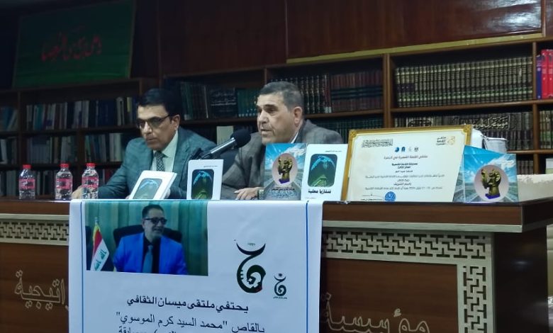 احتفى ملتقى ميسان الثقافي في أمسية اقيمت في مؤسسة الهدى للدراسات الاستراتيجية بالقاص محمد كرم السيد بأصدره الاخير فنتازيا معلبة والصادرة عن دار سراج للطباعة بعد فوزه بمسابقة القصة القصيرة والمكتوبة للاطفال والتي اطلقها مؤخرا اتحاد ادباء وكتاب البصرة وبحضور نخبة من مثقفي المدينة وقدم الجلسة القاص والروائي تحسين علي كريدي والذي أشار في متن مقدمته للإصدارات التي ألفها كرم في رحتله الاديبة الماتعة والتي امتازت بالسخرية والفنتازيا لمدوناته لما تناوله من ادب ميساني اثر استخدامه للمفردة الشعبية وتجنيسها ضمن مفترق ذو حدين على حد تعبيره قدم الدكتور الناقد جبار ماجد البهادلي بورقته النقدية “فنتازيا السرد الشعبي المهمازي”