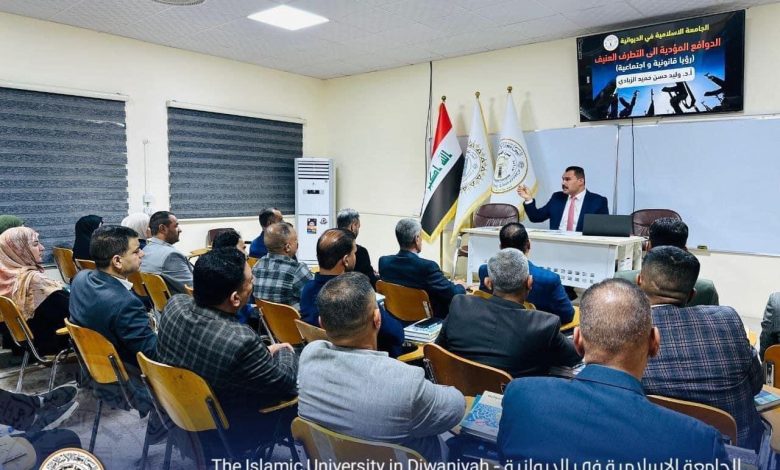 بإشراف رئيس اللجنة الفرعية لمكافحة التطرف العنيف المؤدي إلى الإرهاب في محافظة الديوانية، النائب الثاني للمحافظ، المهندس كاظم عبادي آل عبدان، أقامت الجامعة الإسلامية فرع الديوانية، بالتعاون مع اللجنة الفرعية لمكافحة التطرف العنيف في المحافظة، يوم الاثنين الموافق ١٨ تشرين الثاني ٢٠٢٤، ندوة علمية تحت عنوان ( الدوافع المؤدية إلى التطرف العنيف- قراءة قانونية واجتماعية )، وبحضور عدد من الشخصيات الأكاديمية، والاجتماعية، وطلبة الجامعة.