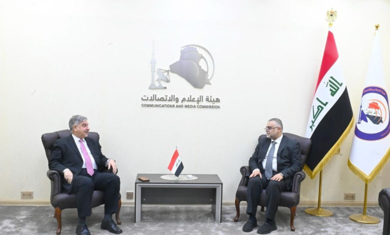 التقى رئيس الجهاز التنفيذي لهيئة الإعلام والاتصالات، المهندس محمد عبد الله عبد الأمير، في مقر الهيئة ببغداد، وكيل وزارة الخارجية لشؤون التخطيط السياسي، السفير الدكتور هشام العلوي، يرافقه رئيس الدائرة الإعلامية في الوزارة، الدكتور فؤاد غازي، لبحث سبل التعاون المشترك في القضايا الإعلامية والدبلوماسية.