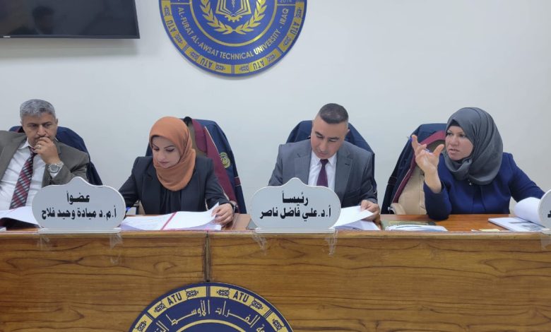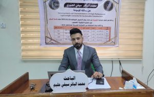 شهدت الكلية التقنية المسيب إحدى تشكيلات جامعة الفرات الاوسط التقنية مناقشة رسالة ماجستير للباحث محمد الباقر سيفي حليم من قسم تقنيات هندسة البناء و الانشاءات والموسومة (تطوير وتصنيف الخرسانة الخفيفة ذات الأداء العالي للبناء المستدام)