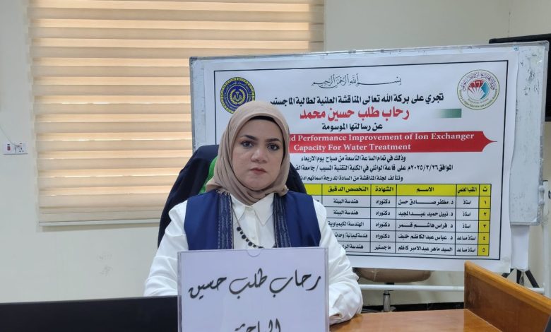رسالة ماجستير في الكلية التقنية المسيب تبحث “تقييم وتحسين أداء سعة المبادل الايوني لمعالجة المياه”