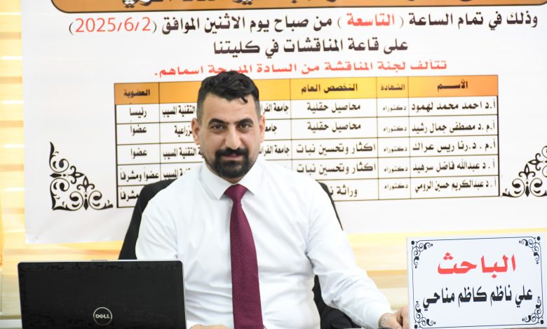 شهدت الكلية التقنية المسيب إحدى تشكيلات جامعة الفرات الاوسط التقنية مناقشة رسالة ماجستير للباحث علي ناظم كاظم من قسم تقنيات الانتاج النباتي حول “تقدير بعض المعالم الوراثية لتراكيب وراثية من الذرة الصفراء بتأثير مدد الري”، والتي هدفت إلى تحسين كفاءة استهلاك المياه وزيادة الإنتاجية في ظل الظروف المائية المحدودة.